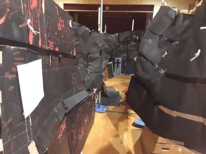 6年生は学級活動の時間に「おばけやしき」に取り組んでいました。「小学校生活の思い出にしたい」という子どもたちの願いから、この取り組みが始まったようです。早朝、休み時間、放課後などのすき間の時間に協力して準備していました。