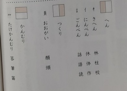 漢字の組み立てと意味 公開日 2021/03/03 更新日 2021/03/03 お知らせ 3年生では国語科で「漢字と組み立てと意味」を学習しています。1組では、部首について学び、「きへん」「にんべん」「ごんべん」について、どんな漢字があるのか出し合っていました。自分の名前に使われている漢字・過去に習った漢字など、たくさん発表したいようで、教科書の巻末にある「2年生までに習った漢字」を読み返していました。 自主学習ノートを取り出して、以前調べたページを見直している児童もいました。 いいね(0)