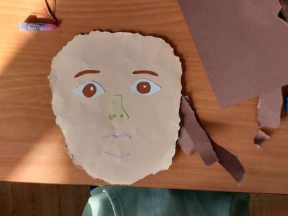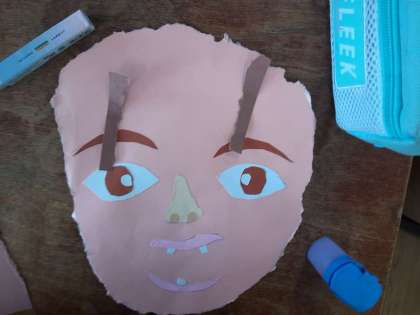 版画(3年生)1 公開日 2021/03/04 更新日 2021/03/04 お知らせ 3年生では図画工作科で、版画に取り組んでいます。テーマは、「昔遊びをしている自分」です。まず顔を作っていました。肌色の用紙に目や鼻・口などをつけました。次は、髪の毛をつけるようです。顔輪郭の頭部分に、手でちぎった髪の毛が上側になるように貼っていきます。 後ろで髪の毛を束ねている女子は、どのように貼っていきましょうか?いくつか意見がでていましたが、首部分の後ろ側に髪の毛を貼っていくのがよいようです。 いいね(0)
