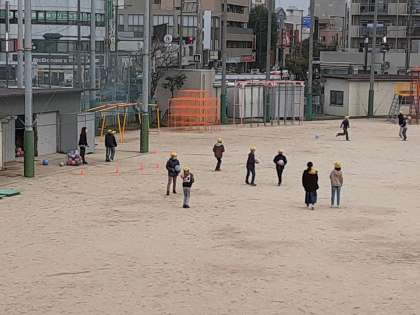 後で5年生に尋ねると、「サバイバルドッジ」をしていたと教えてもらいました。数チームに分かれて、運動場全体を使ってドッジボールをするそうです。当てられたらアウトになり、体育倉庫前のコーンエリアに入ります。アウトになった人も、何らかの形でボールを手に入れることができたら復活します。