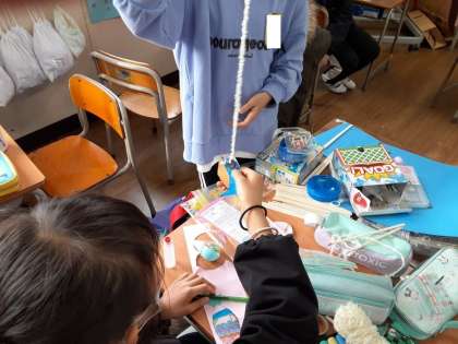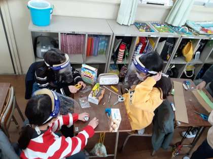 3年生では、理科で「じしゃくの はたらき」を学習してきました。2組では、磁石の働きを利用して、おもちゃを作っていました。サッカーのシュートゲーム、魚釣りゲームのように、遊園地を作るように楽しんでいました。