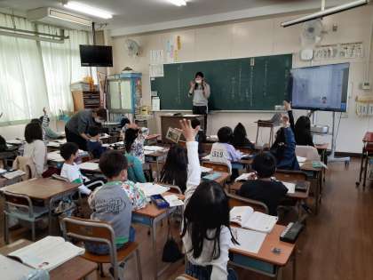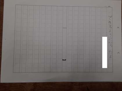 一年かんを ふりかえろう 公開日 2021/03/09 更新日 2021/03/09 お知らせ 1年生では国語科で「一年かんを ふりかえろう」の学習をしています。一年間を振り返って、おうちの方へ伝えたいことを考えました。 そして、原稿用紙に題と名前を書きます。「題を書く時、〇マス空ける」「名前は書き終わったマスが下から2マス目になる」ことから書き出しました。文章は「いつ」「どこで」「何を伝えたいか」から書き始めることを確認していました。 いいね(0)