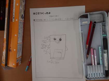 はこで つくったよ 公開日 2021/03/10 更新日 2021/03/10 お知らせ 1年生は図画工作科で「はこで つくったよ」に取り組みます。先生が用意してくれた箱をいくつか選び工作します。本時では、箱の形や大きさを見ながら作りたいものをイメージして、設計図を描いていました。足らない部分は、家から箱を持ってきてもよいようです。ご家庭でご協力ください。 算数科で転がる形について学習しました。箱の中には転がる形が入っていました。その箱を選んで、特徴をうまく利用している児童もいるみたいです。 いいね(0)
