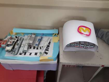 磁石の力を利用したおもちゃ作り1 公開日 2021/03/10 更新日 2021/03/10 お知らせ 3年1組でも、理科で学んだことを活かして、おもちゃを工夫して作っていました。磁石の性質を利用した「魚つりゲーム」がありました。 そして、「鬼滅の刃の動く人形」と言ったらいいでしょうか。これも磁石の力で動くようです。 さらに、車庫付きの「大阪メトロセット」もありました。線路の上を磁石の力で走るようです。消防車や救急車もありました。 いいね(0)