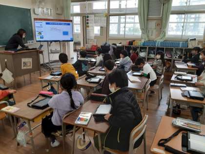 前回はお絵かきソフトで絵を描きましたが、本時ではこの後学習園の草花の写真を撮って観察する、生活科に活用するようです。いい写真を撮ってきてほしいです。(学習園での場面を撮ることができず、申し訳ありませんでした。)