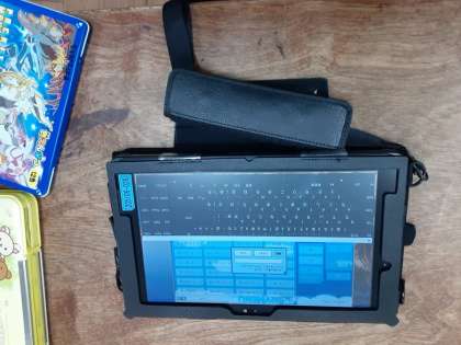 1年生がタブレットを立ち上げていました。IDやパスワードを忘れないように、色鉛筆のケースの裏に貼っています。それを見ながらIDとパスワードを入力します。もう慣れたもので、短い時間でできました。