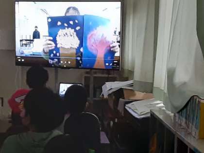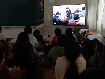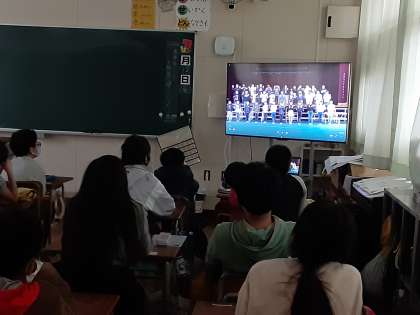 卒業を祝う会は例年全学年が体育館に集まって実施していましたが、今年度は撮影して各教室で観ることになりました。5年生の教室で一緒に観させてもらいました。