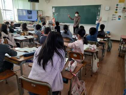 3年生では社会科で昔の大阪市の様子について学習しています。1組では、これからの大阪市が目指すものについて話し合っていました。出生率が低くなっていること・働く世代が少なくなること・高齢化が進むこと、現在の社会的な不安を真剣に受けて取り上げていました。
