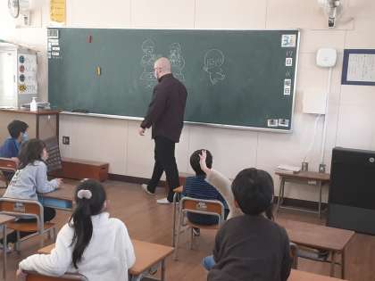 ホワイト先生に質問 公開日 2021/03/17 更新日 2021/03/17 お知らせ 2年1組では、アルファベットカードゲームの後、残り時間にホワイト先生に質問をしていました。好きなことを尋ねた児童がいました。ホワイト先生は黒板に野球選手の絵を素早く描きました。sそして、「baseball」とネイティブな発音を聴かせていただきました。 いいね(0)