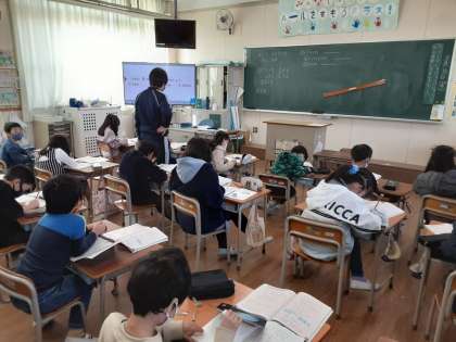 2年生では算数科で「2年のまとめ」に取り組んでいます。2組では、まとめの練習問題を解いていました。2けたのたし算・ひき算、かけ算、時こくと時間、水のかさ、長い長さ、思い出せばいろいろなことを2年生の間に学びました。どの単元も大事ですが、九九は特に大切です。今のうちにしっかり自分のものにしておいてほしいです。