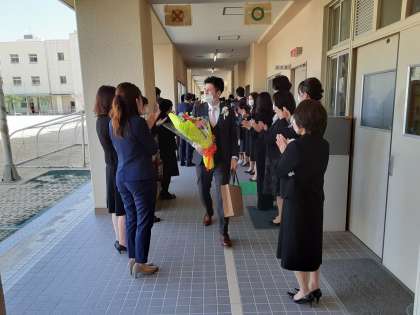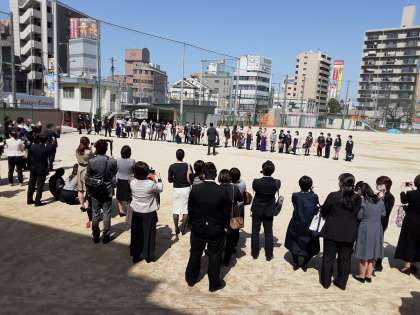 式後は、保護者や教職員の花道を通って巣立っていきました。その後も、運動場で別れを惜しみながら、記念撮影をしていました。