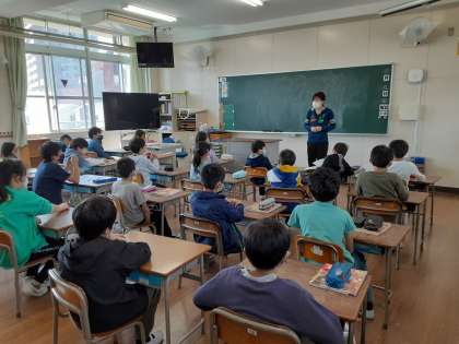 4年1組では社会科の授業のはじめに、学級で発言するときのルールについて、先生から話がありました。「授業中、手を挙げて名前を呼ばれていないのに、しゃべったことがある人は?」という問いかけに、多くの児童が手を挙げていました。心当たりがあるようです。これだけ多くの人が勝手にしゃべると、話し合いにならないことがわかります。挙手して指名されてから発言することを確認していました。