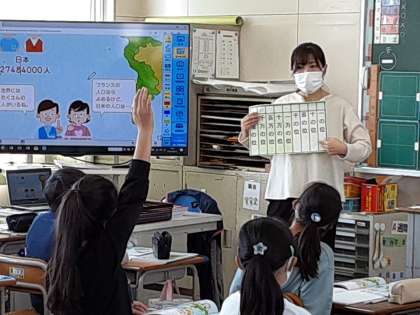 位取り表 公開日 2021/04/12 更新日 2021/04/12 お知らせ 4年1組では算数科で「大きい数」を学習していました。フランスの人口は「64980000人」で「六千四百九十八万人」と読めます。では、日本に人口は「127484000人」、これはどう読めばいいのでしょうか。「読み方を調べるのに、便利な表がありました。それは、何でしょう?」の問いかけに、なかなか正解が出ません。使い方は覚えているようなのですが……。 いいね(0)
