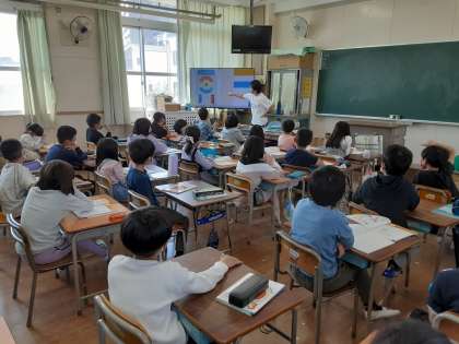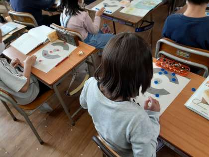得点がもとめられるかな 公開日 2021/04/12 更新日 2021/04/12 お知らせ 3年生では算数科で「かけ算のきまりを見つけよう」の学習をします。本時では、おはじき入れゲームをします。おはじき10個をはじいて、1点・3点・5点それぞれに何個入ったかを表に表します。 ゲームが終わり表は完成しましたが、何点獲得したかを計算しなくてはいけません。よい計算方法があるのでしょうか。 いいね(0)