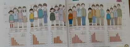4年2組では保健の学習で「体の発育と健康」について学習していましたあきこ・かおり・ちひろ・ひろき・こうた・まさと」6人の9歳から18歳までの成長の違いについて考えていました。年齢とともに6人をも背が伸びていますが伸び方が違います。その違いを言葉でうまく表現しづらかったようです。