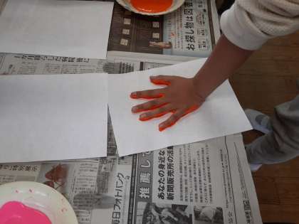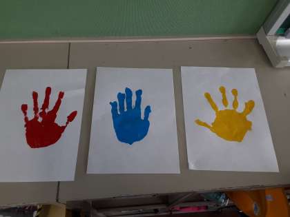 学級掲示 公開日 2021/04/15 更新日 2021/04/15 お知らせ 4年2組では図画工作科の時間に手の型を取っていました。手のひら全体に絵の具を塗り、画用紙に押し当てていました。手の形を比べてみると、大きさや指の長さ、手のひらの広さ、個々に微妙に違うのがわかります。 この後、全員の手の型を大きな模造紙に貼り、学級目標とともに掲示するようです。違うのは手の型だけでなく、個性も豊かな子どもたちです。すてきな仲間に育ってほしいです。 いいね(0)