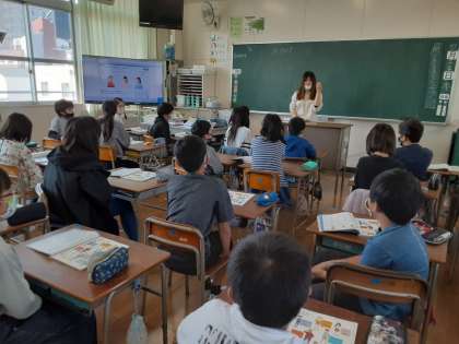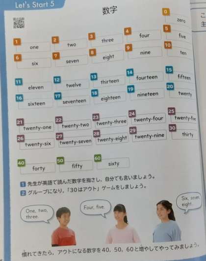 5年生は英語科で「英語の『数字』」について学習していました。「ten」以降は難しいと思われましたが、先生の発音を聞いてすぐ慣れていきました。