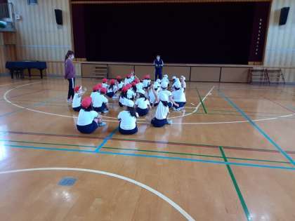 雨が降りそうだったので、3年生は体育館で体育科の授業をしていました。前半は並ぶときの順番を決めていました。36人の学級になったので、並んだ時の縦の長さが2倍になります。並ぶだけでも時間がかかります。しかし、それでは校外活動などで学級で移動するとき困ります。素早く並べるように、一人ひとりが動いてほしいです。