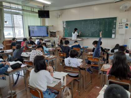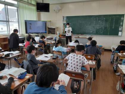 4年生は国語科で「こわれた千の楽器」を学習していきます。1組では、月や楽器たちの様子を読んで、それぞれの気持ちについて考えていました。「こわれて使えなくなった楽器たちが『くものす』をかぶって……」「(月から)せなかをかくしました」様子や行動から、楽器の気持ちに迫っていました。