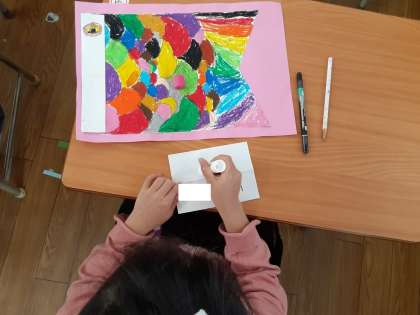 こいのぼり 公開日 2021/04/27 更新日 2021/04/27 お知らせ もうすぐ5月5日、子どもの日です。1年1組では、図画工作科で作ったこいのぼりにつける名前を書いていました。小学生になって、習った平仮名も多くなってきました。書き順や語り、バランスを考えて書く児童が何人もいました。こいのぼりも、うろこ1枚1枚丁寧にパスで塗っています。素敵なこいのぼりが教室の中をたくさん泳ぐのが楽しみです。 いいね(0)