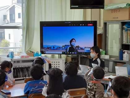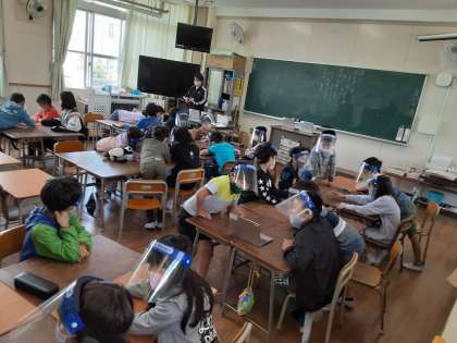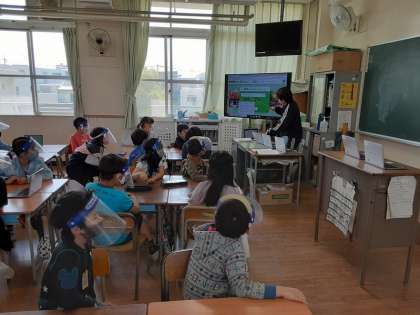 後ろの背景が変わります 公開日 2021/04/27 更新日 2021/04/27 お知らせ 3年生がTeamsの双方向通信を試していました。38人全員で立ち上げると重くて動かなくなるようです。そこで、班で1台ずつ立ち上げて試みていました。チャットのような文字のやり取りはあまり驚かなかったようですが、顔が映ると嬉しそうに見入っていました。 「部屋の中を見られたくない人は、背景を変えられます。」と先生が言いながら操作すると、山内先生の背景が海岸に変わり、みんな驚いていました。 いいね(0)