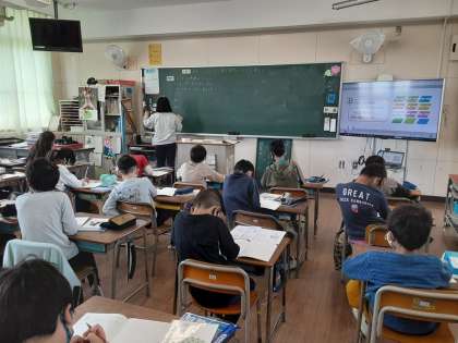2学級を3分割で 公開日 2021/04/27 更新日 2021/04/27 お知らせ 4年生では算数科で「わり算の筆算」について学習しています。4年生は2学級を3分割して取り組んでいます。本時では、あまりのあるわり算の筆算の仕方について考えます。見通しで「わる数」と「あまり」どちらの方が大きいのか不等号で表してみると……。答えが正しいのか、確かめは……。わり算の答えを商という……。あまりのあるわり算には、大切なポイントがたくさんあるようです。 いいね(0)