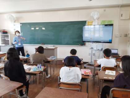 5年生では算数科で「合同な図形と角」を学習しています。5年生は、1学級を2分割しています。本時では、三角形の3つの角の大きさの和が何度になるのかを考えていました。分度器で三角形の角度を測ってみると、和は180度になるようです。どうしてなのかを考えるために、同じ大きさの三角形をいくつも用意していました。いろいろなパターンでつなげていくうちに、何かがわかってきました。