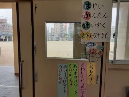 教室の横には、「は・か・せ・どん」と「考えを伝えたり聞いたりする時に気をつけること」の掲示がありました。