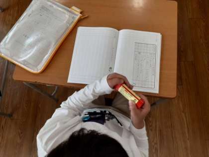 授業を大切にしたいので配ったり連絡帳に貼ったりする時間は効率よくしたいと思っています。頼もしい子どもたちでした。