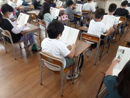 こわれた千の楽器 公開日 2021/05/07 更新日 2021/05/07 お知らせ 4年生では国語科で「こわれた千の楽器」を学習していきます。2組では授業の導入で物語を音読するときの約束ごとについて確認していました。学級で音読する際には、「たけのこ読み」「段落読み」などもありますが、4年2組では、一人ずつ音読していき、句点(「。」)で次の席の人に交代することを基本とするようです。早く慣れてほしいです。 その後、登場人物の様子について考えていきます。さて、楽器は登場人物なのでしょうか。 いいね(0)