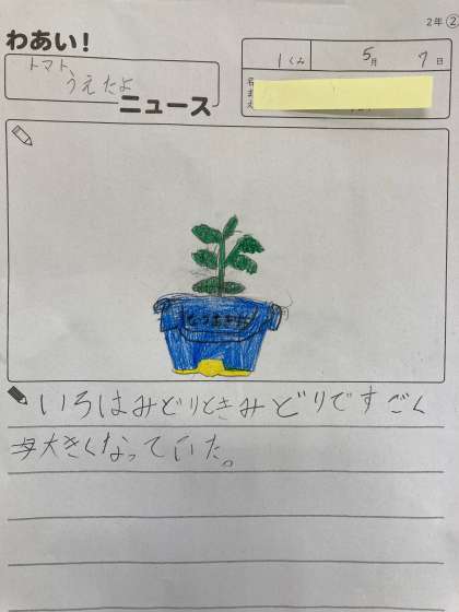 2年生 生活科の学習 公開日 2021/05/10 更新日 2021/05/11 低学年 2年生は生活科の学習で自分たちが植えた「ミニトマトの観察」をしました。 「早く大きくなって実がなるといいな!」という思いを込めながら、しっかりと観察していました。 いいね(0)