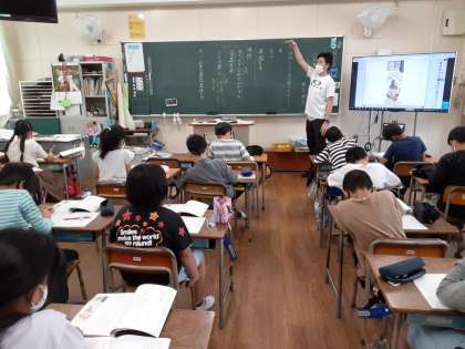 4年生では国語科で「こわれた千の楽器」を学習しています。2組では、第1場面での人物の様子について考えていました。「ある大きな町の『かたすみ』」「くもの巣」「(月が言った)こわれた楽器倉庫だな」物語文の中に使われているこれらの言葉から、様子を考えています。これらの言葉から、「楽器たちはどのような扱いを受けて使われてきたのか。」「月は、どのような気持ちで、楽器たちを見ていたのか。」など、キーワードを基にすると考えやすいようです。