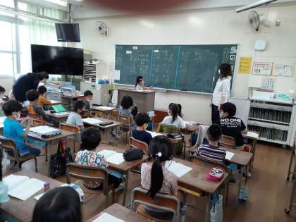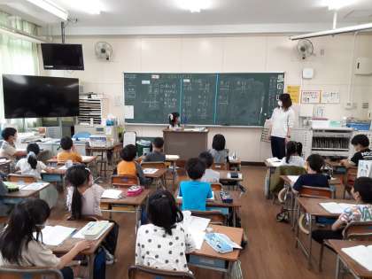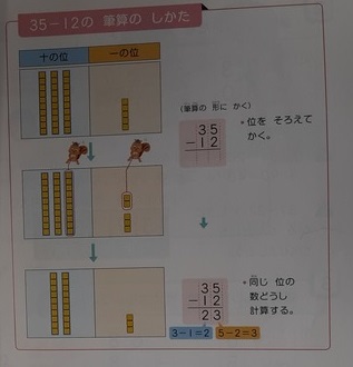 2けた−2けたのひっ算 公開日 2021/05/12 更新日 2021/05/12 お知らせ 2年生では算数科で「2けた−2けたのひっ算」の計算の仕方について考えていました。「35−12」を例題にして、たし算の時のポイント「位をそろえて書く」「十の位・一の位どうし計算する」ことに気をつけると、計算できたようです。 その後いろいろな問題を解いて、希望する児童が前に出て、指示棒片手に解き方を説明していきました。自信をもって説明できる児童が増えてほしいと思います。 いいね(0)