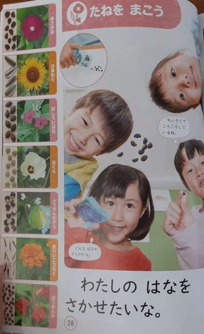教科書に載っているホウセンカの花を見て、「花占いができる」という意外な意見も出ました。「『できる』『できない』と、花びらを1枚ずつ取っていく」という説明をしてくれました。「花占い」最近流行っているのでしょうか。
