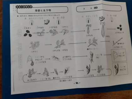 季節と生き物イメージマップ 公開日 2021/05/14 更新日 2021/05/14 お知らせ 4年生では理科で、季節と生き物の関係について学習をしています。日本は、春・夏・秋・冬、1年の間に気候が大きく変わります。植物や動物、たくさんの生きものが、四季の変化にうまく対応して生きていきます。2組では、生きものが季節に対応する過程をまとめたイメージマップを調べていました。 まだしばらく緊急事態宣言のため家庭学習が続きます。次に理科の課題プリントが配られていました。 いいね(0)