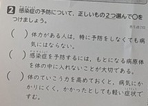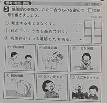 病気の予防 公開日 2021/05/18 更新日 2021/05/18 お知らせ 6年生では保健で学習した「病気の予防」についてのテストをしていました。 「感染症の予防について正しいものを2つ選んで〇をつけましょう」の問題では、3つのうち2つ選びます。体力がある人は予防しなくても病気にならないのでしょうか。そんなことはないようです。 また、感染症の予防の仕方に合うものを選びます。「ディスタンスをとる」ことが大切だと言われますが、どうしてなのか、みんな答えられているようでした。 いいね(0)