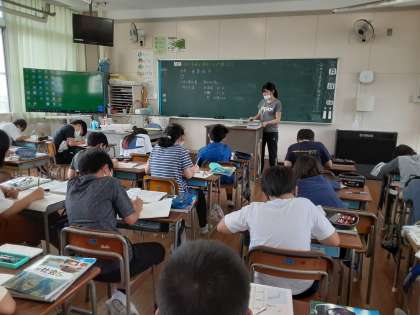 隣りの教室では4年生が算数科で「折れ線グラフ」について学習しています。4年生の算数で学んだことが5年生の社会科で活かされています。改めて各学年の学習内容はつながっていて、積み上げが大切だと感じました。