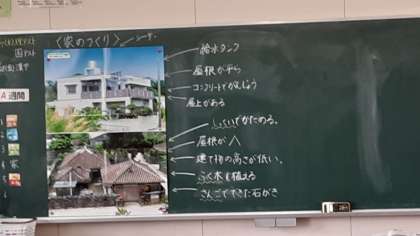 沖縄の家のつくり 公開日 2021/05/26 更新日 2021/05/26 お知らせ 5年生は社会科で「気候にあわせたくらし」について学習しています。本時では、沖縄県で建てられている家のつくりについて調べていました。「給水タンクが屋上に」「コンクリートで頑丈にできている」「しっくいで固めている」「建物の高さが低い」など、大阪の家とは特徴が違っていそうです。沖縄の家には、どうしてこのような工夫がされているのでしょうか? 教室の後ろには昨日作っていた掲示物、帆の部分ができていました。 いいね(0)