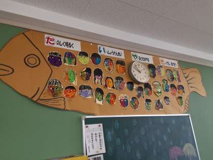 教室の後ろには学級目標「た・い・や・き」が掲示されていました。