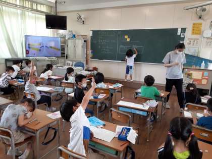 ふえると いくつ 公開日 2021/06/02 更新日 2021/06/02 お知らせ 1年生では算数科で「たし算」について学習しています。数が増える場面の問題を読んで、「ふえると いくつに なるのか」を考えていました。「絵や図を描く」「ブロックを使う」「式に書いて考える」いくつか見通しが出されました。 いろいろな考え方で解くことができる児童が何人もいます。自分にとって合っている考え方は見つかったでしょうか。 いいね(0)