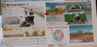 5年生は社会科で「低い土地のくらし」について学習しています。本時では、輪中での農業の工夫について調べていました。まずは昔の様子についてです。水害と闘いながらも、低地の特徴を活かして生活してきました。