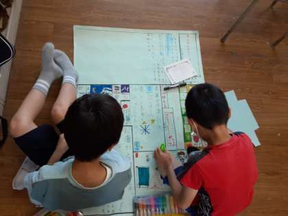 4年1組では学級活動の時間にグループに分かれて新聞を作っていました。「好きな遊び」「好きな学級文庫」など、よりお友だちのことを知るために記事が工夫されていました。「〇〇ランキング」「〜クイズ」各新聞とも多様な内容でした。