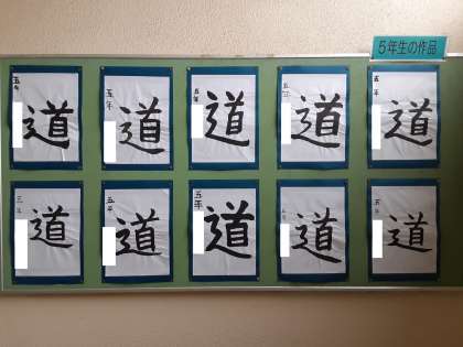 5年生の掲示板に書写の作品「道」が掲示されていました。