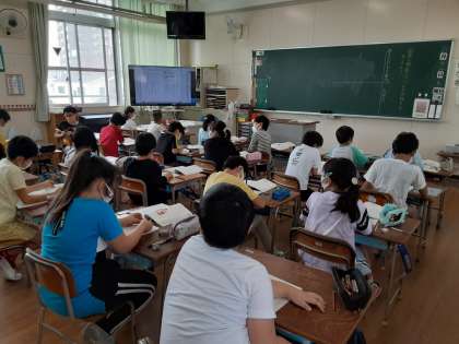 4年生は国語科で「走れ」の学習をしています。1組では、第2場面での「のぶよ」の気持ちについて考えました。2年生の弟けんじが1等賞をとったけど、母は弁当屋の仕事のため応援に間に合いませんでした。お弁当屋のいつものお弁当を見て、けんじは怒って食べずに席に戻りました。がっかりする母、それを感じて心が揺れる「のぶよ」