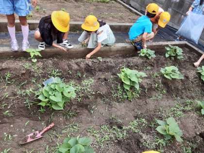 サツマイモを育てています 公開日 2021/06/14 更新日 2021/06/14 お知らせ 2年生は生活科で、さつまいもを育てています。本時では、学習園に来て、雑草抜きなどのお世話をしていました。サツマイモの葉が、だいぶん茂ってきたようです。「たくさんサツマイモができてほしい。」という願いをもって作業していました。 でも、土からダンゴムシが表れると「ああっ。」と言って、ダンゴムシに気をとられる児童もいました。 いいね(0)