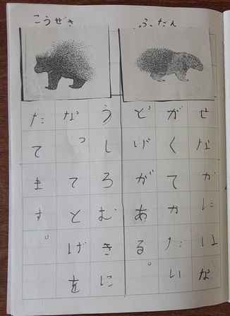どうやって みを まもるのかな 公開日 2021/06/14 更新日 2021/06/14 お知らせ 1年生では国語科で「どうやって みを まもるのかな」の学習をしています。2組では、説明文に登場する動物をノートに書き出して、身の守り方について整理していました。最初は「からだに とげが ある」「かたい こうらを もっている」ように、わかりやすい身の守り方だったのですが、後半になるにつれて、「くさい しるを だす」「さかだちして おどかす」のように、面白い表現になっていることに気づいていました。 いいね(0)