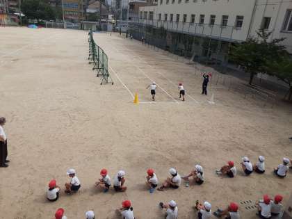 本日は体力テストがありました。運動場で、ソフトボール投げと50m走の正式な記録を取りました。(写真は3年生の様子です。)