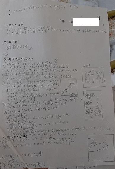 3年生では国語科で「調べて書こう、わたしのレポート」の学習をしています。「ハムスターのくらしについて」「パンダとその他のクマとの違いについて」など、今日もを持ったことを調べて、レポートにまとめていました。