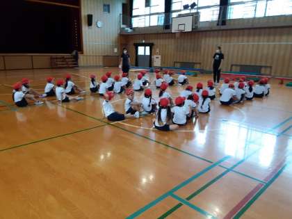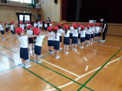 1年生は体育科で、背の高さで、並ぶ順番を決めていました。これから、体育の授業だけでなく、いろいろな活動で並ぶ順番です。場面によって、1列や4列になることもあります。しっかり覚えてほしいと思います。