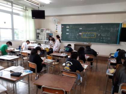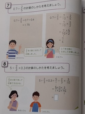 小数と分数が混ざった計算 公開日 2021/06/18 更新日 2021/06/18 お知らせ 6年生では算数科で「分数のわり算」の学習をしています。この単元の学習も、いよいよ大詰めになりました。本時では、小数と分数が混ざった計算に取り組んでいました。結構手間のかかる難問ですが、しっかり解いて乗り越えてほしいです。 できた児童から、ドリルやまとめの練習問題をこなしていました。 いいね(0)